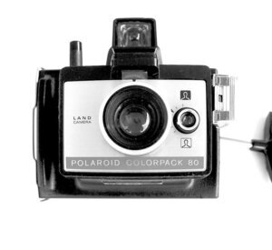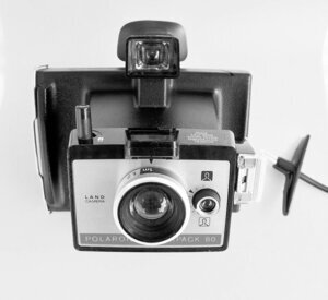 Die Polaroid "Land Kamera" Color Pack 80 stammt aus den Jahr 1970. Es ist eine sogenannte Sofortbild Kamera, das das Bild gleich nach der Aufnahme entwickelt wird. Das Objektiv hat die Werte 1:9,2/114 mm. Die Entferung wurde manuell eingestellt und reichte von 1 m bis unendlich. Die Belichtung erfolgte automatisch. Der Fotoapparat war mit einem Anschluss für Blitzwürfel ausgestattet. Auf der Rückseite, von einem Rahmen gehalten, sind 2 dünne Metallscheiben eingeschoben. Auf der Einen ist die Gebrauchsanweisung, auf der Anderen der Gebrauch der "Kälteschutzmappe" aufgedruckt, da unter 13 Grad Umgebungstemparatur die Entwicklung der Bilder nicht einwandfrei funktionierte.