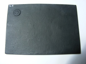 Eisenguss; geschwärzt; Relief; Querformat; Nachguss der Kunstgießerei Buderus Hirzenhain um 1973; Die anlässlich des Neujahrs 1819 erstmals herausgegebene Sayner Neujahrsplakette zeigt auf einem aufgerollten Plan die sog. Schienenfahrt, - einen von der Sayner Hütte produzierten Schienenweg vom Rheinufer zur Festung Ehrenbreitstein, außerdem Geschütze und Kanonenkugeln, eine Glocke sowie aus der Produktion der Kunst- bzw. Tiegelgießerei ein Altarkruzifix und ein Bildnismedaillon. Auf der Vorderseite oben sind das Bergbausymbol (Eisen und Schlägel gekreuzt) und der Bergmannsgruß "Glück auf!" in einem Ahornkranz zu erkennen. Auf der Rückseite ist die Gießereimarke der Kunstgießerei Buderus in Hirzenhain zu sehen. Entwurf: Carl Osterwald (1793-1868). Modelleur: Heinrich Zumpft.