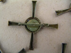 Dieses zum Anstecken gearbeitete Pilgerabzeichen war das offizielle Pilgerabzeichen für diese Ausstellung. Die Pilger konnten es an die Kleidung anstecken und zeigten damit ihre Zugehörigkeit zu der Pilgergemeinde. Das Abzeichen ist ein gleichschenkliges Kreuz, dessen Enden sich verbreitern. In der Mitte ist ein runder "Teller" mit der Abbildung des heiligen Rocks. Auf der nach unten geschlagenen "Fahne" steht "TRIER 1933". Das Pilgerabzeichen ist hohl aus Messingblech geprägt, und auf der Rückseite ist eine einfache Nadel, die auf einer Scheibe befestigt ist, angelötet. Auf der Scheibe steht in entgegengesetzten Schriftzügen "Ges. Gesch." [Gesetzlich geschützt]. Auf der Innenseite der Fahne steht der Hersteller: Kissing - Menden Von den 20 Pilgerabzeichen ist eine noch original in dünnes braunes Papier verpackt, von 8 Pilgerabzeichen hat sich die Anstecknadel gelöst, eine Nadel ist noch vorhanden. Die Pilgerabzeichen werden in einer Pappschachtel für Handschuhe der Firma RL aus Pirmasens aufbewahrt. Auf dem Deckel klebt ein Siegel mit der Aufschrift "IN ALLEM DAS BESTE / RL / SEIT 1850" Herkunft: Devotionalienwerkstatt des Klosters St. Clara, Petrisberg, Trier, 1920 - 2018