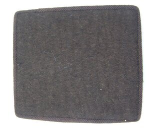 Unbenutztes rechteckiges großes Stempelkissen mit einer Oberfläche aus braunem Wollfilz und einer waffelartigen Polsterung aus Tierhaaren. Beide Teile sind mit einem braunen Stoßband zusammengenäht. Herkunt: Devotionalienwerkstatt des Klosters St. Clara, Petrisberg, Trier, 1920 - 2018