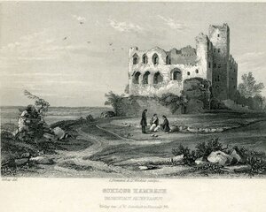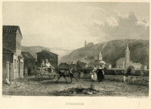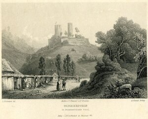 Stahlstich von Haardt an der Weinstraße und der Burg Winzingen. Der Titel "Haardt und Burg Winzingen / Bei Neustadt an D.H. " steht in Druckschrift unterhalb des Bildmotivs. Unter dem Titel ist der Verlag „A.H. Gottschick in Neustadt a/H“ angegeben. Links unterhalb des Bildmotivs steht die Angabe „L. Rottmann del.“ für lat. delineavit, gezeichnet von Leopold Rottmann. In der Mitte steht „Atelier v. C. Frommel & H. Winkles “, für das Stahlstichatelier von Carl Ludwig Frommel und Henry Winkles. Veröffentlicht wurde der Stich in Franz Weiss: Die malerische und romantische Pfalz, Neustadt 1840. Der Blick des Betrachters erfolgt von Osten aus der Ebene auf die Burg hinauf. Im Vordergrund wird Wein geerntet. Die Trauben werden in die auf dem Rücken getragenen Hotten gefüllt und dann in einen Holztrog geschüttet. Die in dem Holztrog zu Saft verarbeiteten Trauben werden anschließend in ein großes Fass geleert, das auf einem zweispännigen Pferdefuhrwerk befestigt ist. Links am Rande des Weinbergs sind Häuser des Ortes Haardt zu sehen. Ganz rechts ist eine Kirche abgebildet, die protestantische Kirche in Haardt. In der Mitte des Stichs ist die titelgebende Burg Winzingen zu sehen. Rechts von der Burg befindet sich ein Wohngebäude im klassizistischen Stil von 1816. Hinter der Burg erheben sich die Hügel der Haardt. Die Höhenburg Winzingen befindet sich auf dem Schlossberg oberhalb von Haardt. Datiert wird sie auf das 10. Jahrhundert. Beschädigt wurde sie im Bauernkrieg 1525 und im Pfälzischen Erbfolgekrieg 1696. Die Burg wurde dem Verfall überlassen, bis 1804 ein Kaufmann aus Neustadt sie kaufte. Dieser begann damit das Gelände in einem Park umzuwandeln und die Reste des Palas zur Kelterhalle umzugestalten. 1875 wurde die Burg von Kommerzienrat August Ritter von Clemm gekauft, der in deren Nähe das Haardter Schloss erbauen ließ. Haardt ist heute ein Ortsteil von Neustadt an der Weinstraße in Rheinland-Pfalz. [Kathrin Koch]