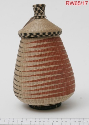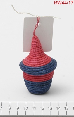 Zu sehen ist ein Kleinkind von ca. einem Jahr. Es sitzt auf der großen, geschwungenen Kante eines Korbes. Der Henkel des Korbes ist mit allerlei Blumen geschmückt. Das Kind ist, bis auf ein kurzes Hemd, nackt. An des linken Schulter des Hemdes befindet sich eine Schleife. Unter dem Foto sind der Name und der Sitz des Ateliers vermerkt.