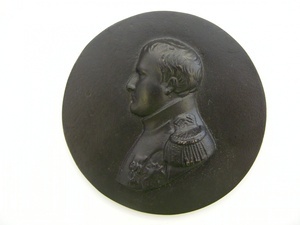 Eisenguss; geschwärzt; Bildnismedaillon; Nachguss; Das Bildnismedaillon zeigt das Brustbild im Profil nach links von Napoleon I. Bonaparte, Kaiser der Franzosen (1769-1821; 1804 Kaiser). Napoleon hier in der Uniform eines Obersten der Grenadiergarde mit Kreuz und Stern der Ehrenlegion und dem Orden der Eisernen Krone. Das Originalmodell stammt von Leonhard Posch (1807). Es handelt sich bei diesem Medaillon um einen Nachguss von Anton Schmidt aus der Zeit um 1973. 1804, gleichzeitig mit der Eröffnung der königlich-preußischen Eisengießerei in Berlin kam der Tiroler Leonhard Posch nach Berlin. Er porträtierte die Berühmtheiten aus der Zeit der Befreiungskriege in Wachs. Die danach gefertigten Modelle für Bildnismedaillons, Plaketten und Reliefs wurden in allen drei königlich-preußischen Gießereien (Gleiwitz, Berlin und Sayn) abgegossen. Neben den Herrschern insbesondere der preußischen Königsfamilie, Feldherren und hohen Beamten war es vor allem das „Letzte Abendmahl“ von Leonardo da Vinci, das Leonhard Posch 1822 nach einem Kupferstich von Raffael Morghen, schuf. Modell: Leonhard Posch;