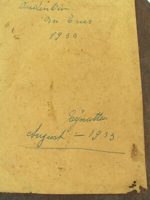 Dieses Andenkenbild an die heilig-Rock-Ausstellung in Trier 1933 zeigt in einem schwarz-weiß-Druck den heiligen Rock, der mit ausgebreiteten Ärmeln an einer Stange hängt. Über ihm ist ein Kreuz abgebildet, aus dessen Ecken zwei kurze Strahlen nach oben zeigen, zwei längere reichen bis zum heiligen Rock. Darüber steht "Trier 1933". Unter dem heiligen Rock befindet sich die Inschrift: "Der hl. Rock Jesu Christi / zur Verehrung der Christen ausgestellt". Am unteren Bildrand befindet sich die Aufschrift: "Pabst Leo X (1514) ertheilte vollkommenen Ablaß denjenigen / welche zur Verehrung des hl. Rockes die Domkirche besuchen." Das Andenkenbild ist hinter Glas wie ein Bildstock mit einem Dach und hervorstehenden Seitenteilen sehr aufwändig gerahmt und gegliedert. Verzierungen aus ausgesägten Halbkreisen und einem ausgesägten gleichschenkligen Kreuz ergänzen das Rahmenwerk. Über dem Andenkbild ist eine längliche Plakette aus Messingblech genagelt mit der Aufschrift "Heiligtumfahrt / Trier 1933". Auf der Rückseite befindet sich oben eine Aufhängung aus Eisen. Der Bereich des Andenkbildist mit Papier abgeklebt, darauf stehen die handschriftlichen Angaben: "Andenken / an Trier / 1933" und "Eynatten [Ostbelgien] / August - 1933".