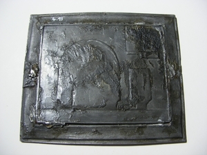 Bleiguss; Modell; Querformat; Diese Neujahrskarte- bzw. Plakette mit Zierrahmen aus Bleiguss hergestellt 1827 für das Neujahr 1828, zeigt als Motiv das Portal zu Remagen am Rhein mit romantischer Landschaft und Wanderer. Auf der Vorderseite fehlt oben links die Beschriftung "SAYNERHÜTTE / MDCCCDXXVIII" und ist stattdessen ersetzt durch ein Mauerwerk. Am unteren Rand ist zu lesen: "VORMALIGES PORTAL ZU REMAGEN AM RHEIN". Dem ersten Entwurf hatte man auf der Sayner Hütte eigenmächtig einen Wanderer mit Landschaft hinzugefügt, was von den vorgesetzten Dienststellen abgelehnt wurde. Daraufhin musste die Sayner Hütte ein neues, bereinigtes Modell für den Guss der Neujahrsplakette anfertigen. Auf der Hütte existierte nach wie vor ein Modell mit romantischer Landschaft und Wanderer, wovon wohl Abgüsse für den offenen Verkauf erstellt wurden. Entwurf: Bernhard Hundshagen, Bonn. Modell: Heinrich Zumpft, Sayn. Vergleiche Leihgabe: Röntgen Museum Neuwied, vormals Kreismuseum Neuwied (Inv.-Nr. Roentgen 4609).