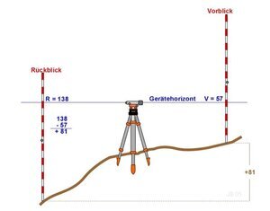Das Baunivelliergerät (Theodolit, Winkelmessinstrument) findet in der Geodäsie (Vermessungskunde) zur Messung von Horizontalrichtungen und Zenit- oder Vertikalwinkeln Verwendung. Hierzu wird er mittels eines Stativs über einem Vermessungspunkt lotrecht aufgestellt. Der Theodolit besteht im Wesentlichen aus einem Zielfernrohr, einem Vertikal- und einem Horizontal-Teilkreis und mehreren Libellen. Letztere dienen zur lotrechten Ausrichtung des Gerätes (Horizontieren). In das Zielfernrohr ist ein Strichkreuz integriert, mit dem das Ziel anvisiert wird. Meist werden die dabei eingestellten Winkel in der Einheit Gon vom Gerät angezeigt und/oder gespeichert (100 Gon = 90°).
