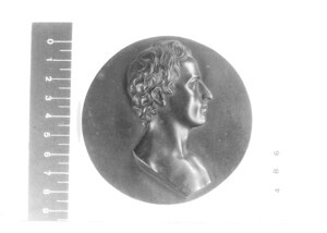 Eisenguss; geschwärzt; Bildnismedaillon; Medaillon mit leicht erhöhtem Rand, das im Flachrelief das Porträt von Friedrich Ludwig Jahn (1778-1852), genannt "Turnvater Jahn" abbildet. Am Rand ist umlaufend die Inschrift "FRIEDRICH LUDWIG JAHN" "Geb 11. Aug. 1778 Gest. 15. Okt. 1852" zu erkennen sowie eine Eichel und das Deutsche Turnerbundzeichen als weitere Verzierung. Die Rückseite ist am Rand umlaufend mit einem Lorbeerkranz verziert. Außerdem ist eine Gießereimarke (Malapane?) und ein Stift mit Gewinde abgebildet. Es handelt sich bei diesem Bildnismedaillon um einen Nachguss aus der 2. Hälfte des 19. Jahrhunderts. Der ehemalige Kunstgießer auf der Concordiahütte, Toni Schmidt, hat das Medaillon auf der Vorderseite geschwärzt.