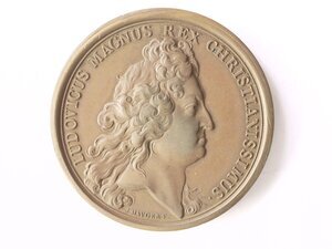 Die Medaille wurde anlässlich der Eroberung von Landau und Freiburg im Jahr 1713 während des Spanischen Erbfolgekrieges gefertigt. Gegen Ende des Krieges und nach dem Separatfrieden von Utrecht, bei dem Großbritannien aus dem Krieg austrat, kam es lediglich noch im Rheingebiet zu Kampfhandlungen. Die französischen Truppen unter Marschall Villars gewannen dabei wieder die Oberhand. Sie brandschatzten die Pfalz und eroberten die Festungsstädte Landau (am 20. August) und Freiburg (am 16. November). Auf der Vorderseite der Medaille ist der Kopf Ludwigs XIV. nach rechts abgebildet. Das Monogramm TB steht für den Medailleur Thomas Bernard. Die Rückseite zeigt eine allegorische Darstellung von Jean Dollin: Der Kriegsgott und "Bezwinger" Mars ("Mars debellator") hat demonstrativ einen Fuß auf die am Boden liegenden Wappenschilde der beiden besiegten Städte gesetzt. Neben den Schilden liegen auch die Stadtkronen Freiburgs und Landaus auf dem Boden. Die Medaille gehört zu einer ab den 1690er Jahren geschaffenen Serie zum Gedenken an die militärischen und politischen Erfolge Ludwigs XIV. Auf der Vorderseite zeigen sie immer das Bildnis des Königs dem jeweiligen Alter entsprechend und auf der Rückseite eine allegorische Darstellung des zu gedenkenden Ereignisses. [Johanna Kätzel]