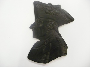 Eisenguss; geschwärzt; Porträtrelief; Drahtaufhänger; Das Relief zeigt im Profil nach links Friedrich II. (der Große), König von Preußen (1712-1786) mit Dreispitz. Bei diesem Exemplar handelt es sich um einen Nachguss der 1970er Jahre des ehemaligen Kunstgießeres der Concordiahütte Anton Schmidt.