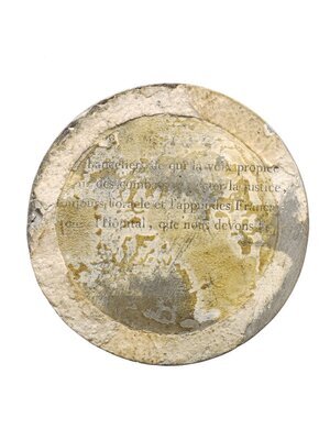 Einseitige Medaille auf die - erzwungene - Rückkehr König Ludwigs XVI. nach Paris 1789. Sie zeigt Ludwig XVI. mit seiner Familie in einer Kutsche, die von dicht gedrängten Volksmassen von Versailles nach Paris geführt wird. Die Umschrift feiert, dass das Volk den König besiegt hat. Als nunmehr "König der Franzosen" sollte Ludwig XVI. noch etwa zwei Jahre bis zu seiner Absetzung regieren. Im dargestellten Moment bewegen sich die Massen über die "Place Louis XV.", die heutige "Place de la Concorde". Der geschichtsträchtige Ort wechselte mehrfach seinen Namen. Unter Ludwig XV. wurde der Platz am Ende der Tuileriengärten neu geschaffen, um dort das von Edmé Bouchardon gefertigte Reiterstandbild des Königs aufzustellen. Drei Jahre nach den auf der Medaille dargestellten Ereignissen sollte sie durch Revolutionäre zerstört werden und der Platz in "Place de la Révolution" umbenannt werden. An der Stelle des königlichen Reiterstandbildes wurde am 21. Januar 1793 eine Guillotine aufgestellt und Ludwig XVI. enthauptet. Der Medailleur Bertrand Andrieu, der später viele Medaillen für Napoleon anfertigte, hatte den Plan, eine Serie zu den Ereignissen der Französischen Revolution zu schaffen. Realisiert wurden jedoch nur die vorliegende Medaille und eine Medaille auf den Sturm der Bastille (Inv.-Nr. M_22429). [Johanna Kätzel]