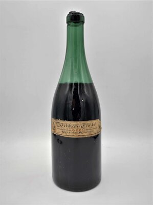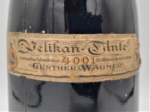 Die Tintenflasche der Marke Pelikan wurde vermutlich um das Jahr 1937 hergestellt. Das lässt sich daraus ableiten, da ab 1878 zuerst drei und später vier Jungtiere (Die Anzahl der Jungtiere entsprach der Anzahl der Kinder Wagners) im Logo der Marke Pelikan zu sehen waren. Auch ist der Firmenname Günther Wagner zu lesen, welcher erst 1968 ebenfalls in Pelikan umbenannt wurde (Wikipedia). Der Zeitraum kann so klein eingeschätzt werden, da auf dem Etikett der Flasche sowohl das Logo mit vier Jungtieren, als auch das standardisierte Logo mit zwei Jungtieren, welches erst ab 1937 genutzt wurde, abgedruckt sind. Generell ist das Etikett der Tintenflasche sehr ausgefallen und kunstvoll gestaltet. Bei der Tinte handelt es sich um die Eisengallustinte 4001, die 1898 erstmals auf dem Markt erschien (Wikipedia). Laut dem kunstvoll gestalteten Etikett fließe die Tinte bläulich und werde dann schwarz. Die aus Glas gefertigte Tintenflasche besitzt auf seiner Unterseite eine nach außen gewölbte Prägung, die das Fassungsvermögen von 0,7 Liter angibt. Die Tinte in der verkorkten Flasche ist heute noch flüssig.