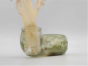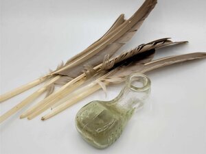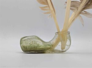 Leeres Tintenfläschchen in Schuh-ähnlicher Form mit Federn