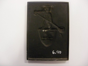 Eisengussrelief, das ein Kind mit Gießpfanne zeigt. Es steht auf einem Wappen mit Darstellung der Concordiahütte. In der oberen linken Ecke ist die Gießereimarke "CH" zu erkennen. Am unteren Rand ist die Inschrift "1838 CONCORDIAHÜTTE 1938" mitgegossen. Diese Neujahrsplakette der Concordiahütte in Bendorf-Mülhofen, wurde anlässlich des 100-jährigen Jubiläums der Grundsteinlegung 1838 im Jahr 1939 herausgegeben.