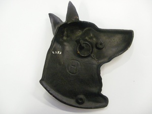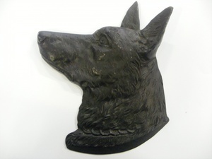Eisenguss; Wandrelief ohne Platte: Schäferhundkopf im Profil nach links; Nachguss von Anton Schmidt um 1973