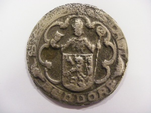 Guss; Medaillon; Das Medaillon zeigt das Bendorfer Stadtwappen mit dem Heiligen St. Medardus.