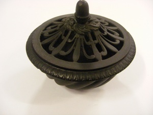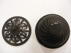 Eisenguss; runde Schmuckdose 2-teilig mit durchbrochenem Deckel; Nachguss von Anton Schmidt (Concordiahütte, Bendorf-Mülhofen) um 1973; Fundort: Bendorf