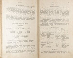 Ein Lehrbuch der französischen Sprache aus dem Jahr 1897. Im Gegensatz zu vielen anderen Lehrbüchern für Fremdsprachen aus dieser Zeit liegt der Fokus dieses Werkes mehr auf Sprachübungen als auf Grammatik. Mit dieser eher praktisch orientierten Vorgehensweise, eignete sich dieses Buch besonders für die damaligen Real- und Volksschulen. Im Gegensatz zu den Lehrbüchern der Gymnasien, in denen die Schüler sämtliche grammatikalischen Feinheiten und sprachlichen Besonderheiten lernten, ermöglichte es dieses Buch den Schülern, sich bereits nach 3 bis 4 Jahren auf Französisch zu unterhalten. In dem Buch befinden sich zudem noch einige handschriftliche Sprachübungen die wohl irgendwann iim Verlauf des letzten Jahrhunderts von einem Schüler angefertigt wurden.