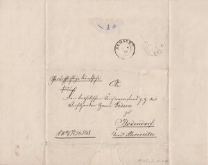 Mitteilung als Brief geschrieben auf einem Papierbogen 262 x 416 mm, der halb gefaltet wurde, und zum Format 90 x 154 mm zu einem Brief gefaltet und einem Präge-Papiersiegel verschlossen wurde. Das Siegel ist nur noch zur Hälfte vorhanden. Das Aktenzeichen A IV 9(:Pri) J.-Nr. 6568 bezieht sich auf einem Vorgang vom 5. Juli 1875 und einer Verfügung mit Aktenzeichen A IV 9(:Pri) 6084.