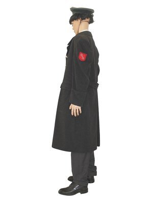 Komplette Uniform eines Mainzer Straßenbahnschaffners der Stadtwerke Mainz AG Verkehrsbetriebe aus den 1950er Jahren bestehend aus einem Schaffnermantel, einer Schaffnermütze, einer Schaffnerjacke, einer Straßenbahnertasche mit div. Utensilien, einem Geldwechsler mit enthaltenen Münzen und einer Fahrkartentasche mit Fahrscheinen und Schnaffnerzange.