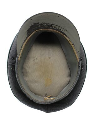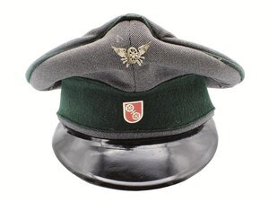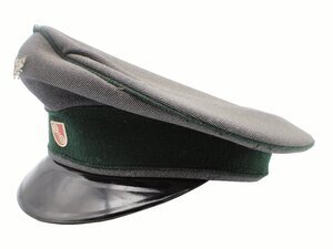 Stoff-Schaffnermütze (Stadtwerke Mainz AG Verkehrsbetriebe) aus den 1950er Jahren mit rot-/silberfarbenem Mainzer Wappen und silberfarbenem Emblem "rollendes Flügelrad"