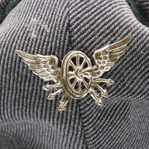 Stoff-Schaffnermütze (Stadtwerke Mainz AG Verkehrsbetriebe) aus den 1950er Jahren mit rot-/silberfarbenem Mainzer Wappen und silberfarbenem Emblem "rollendes Flügelrad"