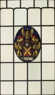 Bleiglasfenster mit Wappen der Familie Dacqué