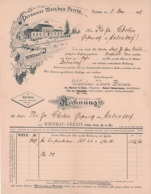 Rechnung über Lieferung von Trester in Fässern vom Weinbau-Verein Dernau an Peter Josef Choin in Bodendorf vom 08. November 1898