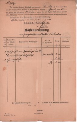 Kostenrechnung des Königlichen Amtsgerichtes Andernach in der Zwangsvollstreckungssache Cholin/Kran vom 12. Juli 1900
