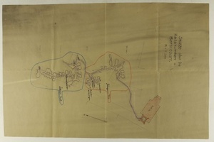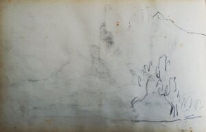 Datiert unten links: "1. September (1843)//im Schiff". Flüchtige Skizze eines mächtigen Bergmassivs, wahrscheinlich am Mondsee, von einem Schiff aus gezeichnet. Die Skizze läuft über zwei Blatt (HM_1988_264_64 & HM_1988_264_65). Durchlaufende Nummerierung jeweils auf der oberen rechten Skizzenbuchseite: hier: "35". Zu diesem Tag schreibt Fried in sein Tagebuch: "Ausflug, Möchte in Öl malen, deshalb große Schlepperei. Über den Schürfling, von da aus nach Hüttenfeld. Zeichnete eine Ansicht von St. Gilgen". (Tagebuch, Stadtarchiv Landau).