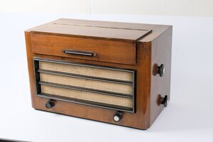 Ein Radio aus der Zeit vor dem 2. Weltkrieg. Das in Mittelbraun furnierte Tischgerät der Firma SABA wurde zwischen 1937/1938 hergestellt. Das Besondere an diesem Radio ist die Möglichkeit, die Senderskala unter einem Deckel zu verbergen. Erst ein anheben und zurückklappen des Deckels gibt die Skala frei. Die Bedienelemente sind, bis auf zwei Drehregler, seitlich angeordnet. Wählbar sind die Wellenbereiche MW/LW und KW. In der Gesamtansicht wirkt das Gerät wuchtig, massiv, fast ein bisschen klobig. Auf der Vorderseite dominiert der Lautsprecher, der zusätzlich durch Holzleisten eingerahmt ist. Lt. dem damaligen Verkaufskatalog kostete das Gerät 1937, 288 RM. Auf der Rückseite sind externe Anschlüsse für Tonabnehmer, Antenne und Erde.