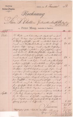 Rechnung der Farben und Tapetenhandel Maag in Sinzig vom 1. Januar 1899 an Gastwirtschaft Cholin in Bodendorf/Ahr