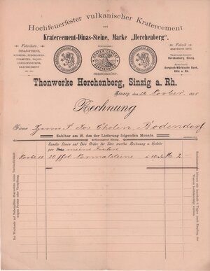 Rechnung der Thonwerke Herschenberg, Sinzig vom 26. November 1898 an Gastwirtschaft Cholin in Bodendorf/Ahr