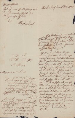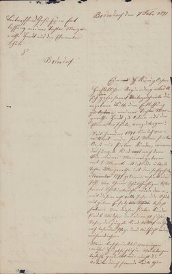 Am 4. Februar 1891 schreibt die Mutter, Elisabeth Hardt, die Königliche Regierung in Koblenz an und bitte ihe Tochter Margarethe, geb. 16. November 1877, von Unterricht in der Elemantarschule zu befreien. Als Gründe gibt sie an ihr Mann sei im Januar 1890 gestorben und sie mit sieben unmündigen Kinder zurück gelassen zu haben. Von Seiten der Familie kann sie keine Unterstützung erhalten. Auch nicht von ihrer kränklichen Mutter, 38 Jahre alt, für die die Arbeit im Weinberg zu schwierig sei. Deshalb ist sie auf die Unterstützung ihrer älteste Tochter Margarethe gringend angewiesen. Die schwarzen Flecken im Papier sind durch Papierfraß entschanden.