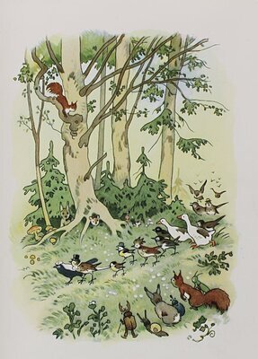 "Die Vogelhochzeit", "Eine lustige Geschichte mit Bildern von Fritz Baumgarten" ein Buch mit buntem Deckelbild und bunten Bildern aus dem Engelbert Dessart Verlag Mainz (1948-1970)