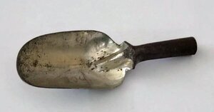 Flache Schaufel mit rundem Holzgriff aus Buchenholz geschnitzt. Fassungsvermögen 500 g. Verwendet wurde die Schaufel in der Bodendorfer Mühle um 1940 zum Abpacken kleiner Mehlmengen für die häusliche Verwendung.