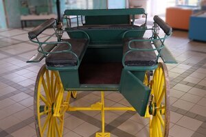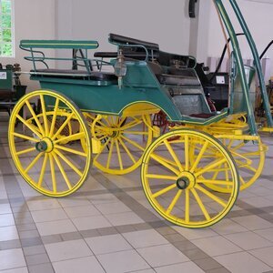 Unser Objekt ist eine offene, gefederte Kutsche zur Beförderung von max. 6 Personen. Diese Wagonette, so heißt der Wagentyp, wurde von der Kutschenfabrik Jean Dunkel, aus Echternach/Lux. hergestellt. Auf dem Kutschbock hatten 2 Personen Platz. Dahinter, auf der Ladefläche, sind zwei weitere Sitzbänke (rechts und links) längs zur Fahrtrichtung eingebaut, so dass sich die 4 Passagiere gegenüber saßen. Der Zustieg erfolgte von der Rückseite her. Zwei Trittstufen erleichtern den Einstieg in die Kutsche. Für ein angenehmeres Fahrgefühl sorgen 4 Blattfedern, die eine Verbindung zwischen Fahrwerk und dem Aufbau herstellen. Gebremst wurde die Kutsche mit einer Kurbel. Über ein Gestänge wurden zwei Klötze, meist aus Holz, gegen die Räder gedrückt. Daher auch der Name Klotzbremse. 2 Öllampen, rechts und links vom Kutschersitz, sorgten bei Dunkelheit für eine Beleuchtung Unsere Wagonette wurde von der Firma Rudolf Alt aus Trier (Jahr unbekannt) restauriert. Sie hat heute eine zwei Farben Lackierung. Das Fahrgestell ist in einen kräftigen gelb, die Kutsche selbst grün Lackiert. Ob das die Originalfarben sind, lässt sich nicht mehr feststellen.