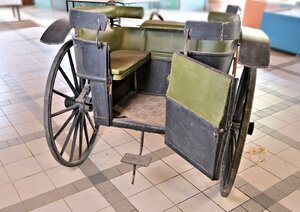 Bei der Kutsche "Tonneau" handelt es sich um eine Zweirädrige Kutsche die von einem Pferd, oft auch von einem Pony gezogen wurde. Dieser Typ wurde im Volksmund auch als Gouvernanten Wagen bezeichnet. Die gegenüberliegenden Sitze waren geeignet, die Kinder gut zu beaufsichtigen. Die Kutsche hat große, gummibereifte Räder (Ø 1,20m) Die beiden Blattfedern fangen, auf unebenen Straßen, die gröbsten Stöße ab. Einen extra Kutscherplatz gibt es nicht. Gefahren wird die Kutsche von einem der Sitzplätze aus. Das Gefährt besitzt seltsamerweise keine Bremsen. Der Einstieg erfolgte von der Rückseite her und wurde durch eine eiserne Einstiegshilfe erleichtert. Als Beleuchtung dienen 2 Petroleum Lampen.
