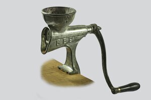 Die relativ große, verzinkte, Obstpresse ist gegossen und hat am oberen Ende einen Einfülltrichter und an unteren Ende eine Tischspannvorrichtung mit Flügelschraube. Seitlich ist eine Handkurbel mit Holzgriff angeschraubt. Auf dem Korpus ist der Schriftzug "BEER" zu lesen und auf dem Einfüulltrichter steht die Zahl "101".