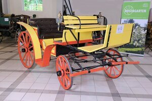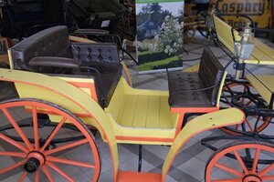 Unser Landratswagen oder auch OPEN Phaeton stammt von der Gerberei Streit aus Meserich, die ihren Betrieb 1964 eingestellte. Bei der Übernahme war die Kutsche renovierungsbedürftig. Leider wurde bei der späteren Restaurierung nicht mit dem notwendigen Fingerspitzengefühl vorgegangen. Gezogen wurde das Gefährt von 2 Pferden. Deichsel, Ortscheid, Räder und Schutzbleche sind orangefarben lackiert, der Kutschenaufbau in Gelb. Das gesamte Chassis, einschließlich der Waage, in schwarz lackiert. In dieser Lackierung nahm unser Landratswagen beim Konzer Old-und Youngtimer Treffen am 20.7.2014 teil. Seltsamerweise besitzt die Kutsche keine Bremsvorrichtung. Die zwei Achsige, offene Kutsche, bietet im Wagen Platz für vier Personen, die sich während der Fahrt gegenübersitzen. Die Sitzbänke sind dick gepolstert und mit braunem Leder in Knopfpolsterung bezogen. Auf dem Kutscherbock können zusätzlich zwei Personen sitzen. Das Chassis, in handwerklicher Schmiedetradition hergestellt, trägt den Wagen. Vier Blattfedern stellen die Verbindung her und sorgen für eine angenehmere Fahrt. Das Schutzblech ist in der Mitte, zwischen Vorder- und Hinterrad, soweit heruntergezogen, dass es als Einstiegshilfe dient. Als Beleuchtung dienen zwei Petroleumlampen deren Gläser geschliffen sind.