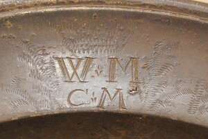 Der Teller hat einen geformten umlaufenden und mit umlaufendem verdickten Rand. Auf der Rückseite befinden die drei ovale Stempel; dünner erhabener Rand mit Engel (der ein Schwert und Waage hält) und der Beschriftung oben = I.B.Finck - unten Engelblockzinn. I. B. Finck