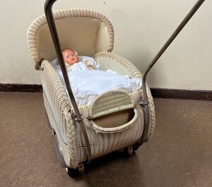 Puppenwagen mit Korbgeflecht aus Kunststoff