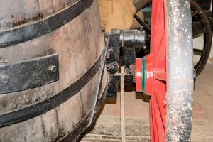 Die Traubenbütte ist auf ein einachsiges Untergestell, mit eisenbereiften Speichenräder aus Holz, montiert. Sie diente einem Kleinwinzer zum Transport der abgeernteten Trauben. Über einen Hebelmechanismus konnte die Bütte auf dem Boden abgestellt und mit Trauben befüllt werden. Für den Abtransport wurde mit dem Hebelmechanismus die volle Bütte wieder angehoben und auf eigener Achse abtransportiert Die Deichsel ist so konstruiert, dass dies auch mit einem kleinen Weinbergsschlepper geschehen konnte.