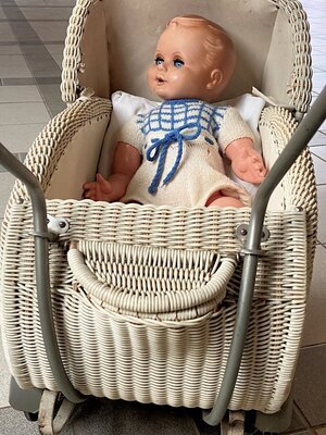 Puppenwagen mit Weidengeflecht
