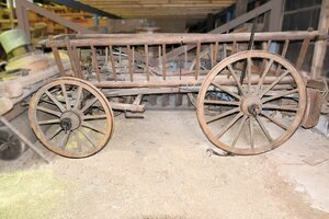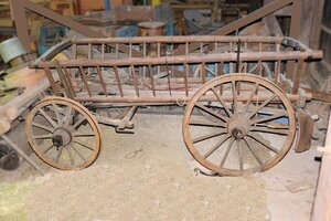 Der schwere Acker- bzw. Leiterwagen war für den bäuerlichen Betrieb ein unentbehrlicher Helfer. Als Zugtiere konnten Pferde oder auch Kühe eingesetzt werden. Ein- oder Zweispänner gefahren, beides war möglich. Ausgerüstet ist der Wagen mit 60 cm hohen, seitlichen Leitern, die einen sicheren Transport z. Bsp. von Heu gewährleisteten. Gebremst werden konnte der Wagen mit Hilfe einer Klotzbremse. Dies geschieht durch das Drehen an einer Kurbel, wodurch Holzklötze auf beide Hinterräder gepresst werden.