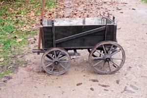 Ringsum geschlossener Leiterwagen, dadurch auch für den Transport von Schüttgut (Sand, Kies usw) geeignet. Bei großer Belastung sorgen 2 Spannketten dafür, dass die Seitenteile dem Druck standhalten. Der Wagen war ursprünglich dunkelgrün gestrichen, was an den vorhandenen Farbresten erkennbar ist. Die hölzernen Speichenräder haben vorn und hinten unterschiedliche Größen. Die Deichsel wurde zu einem späteren Zeitpunkt erneuert.