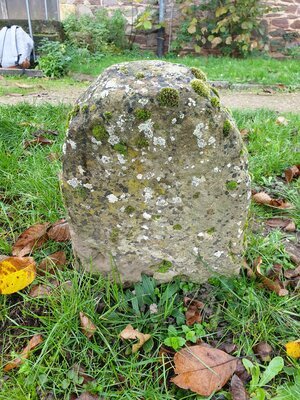Ein aus gelbgrauem Sandstein bestehender Grenzstein aus einem Klostergut, welcher 1985 in einem Straßengraben bei Trier-Herresthal gefunden wurde. Wahrscheinlich wurde der Stein um 1635-1636 hergestellt. Wie andere Grenzsteine, so lässt sich auch dieser in einen sichtbaren, über den Boden hinausragenden Bereich und einen nicht-sichtbaren, vergrabenen Bereich unterteilen. Im sichtbaren Bereich befinden sich auf einer Höhe von etwa 28 cm verschiedene Symbole, darunter etwa ein Kreuz, Herz, Abtsstab und Leiter. Daneben erkennt man ein umgekehrtes S sowie ein A, welche auf Sanctus Albanus schließen lassen und somit einen Hinweis auf dessen Ursprung ermöglichen. Der Stein wird also höchstwahrscheinlich aus dem Kartäuserkloser Trier, St. Alban, stammen und lässt sich entsprechend in die Zeit um etwa 1635-1636 datieren. Später nämlich, nach 1674, wurde das Kloster im Bereich Trier im Zuge des Wiedervereinigungskrieges aufgegeben und man siedelte ab 1679/80 nach Konz-Karthaus um. Im nicht-sichtbaren Bereich des Steines sind ebenfalls noch einmal das umgekehrte S und A zu erkennen.