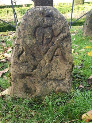 Ein aus gelbgrauem Sandstein bestehender Grenzstein aus einem Klostergut, welcher 1985 in einem Straßengraben bei Trier-Herresthal gefunden wurde. Wahrscheinlich wurde der Stein um 1635-1636 hergestellt. Wie andere Grenzsteine, so lässt sich auch dieser in einen sichtbaren, über den Boden hinausragenden Bereich und einen nicht-sichtbaren, vergrabenen Bereich unterteilen. Im sichtbaren Bereich befinden sich auf einer Höhe von etwa 28 cm verschiedene Symbole, darunter etwa ein Kreuz, Herz, Abtsstab und Leiter. Daneben erkennt man ein umgekehrtes S sowie ein A, welche auf Sanctus Albanus schließen lassen und somit einen Hinweis auf dessen Ursprung ermöglichen. Der Stein wird also höchstwahrscheinlich aus dem Kartäuserkloser Trier, St. Alban, stammen und lässt sich entsprechend in die Zeit um etwa 1635-1636 datieren. Später nämlich, nach 1674, wurde das Kloster im Bereich Trier im Zuge des Wiedervereinigungskrieges aufgegeben und man siedelte ab 1679/80 nach Konz-Karthaus um. Im nicht-sichtbaren Bereich des Steines sind ebenfalls noch einmal das umgekehrte S und A zu erkennen.