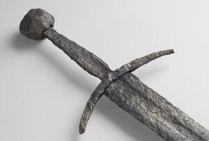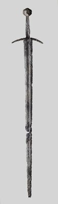 Als man 1739 auf Veranlassung des österreichischen Kaisers Karl VI. auf der Suche nach den Gräbern der Habsburger im Königschor des Speyerer Doms zu graben begann, fand man im Schutt der durch den Pfälzischen Erbfolgekrieg angerichteten Zerstörungen verstreute Gebeine. Sie stammten zum größten Teil aus dem Doppelgrab von König Albrecht I. und der staufischen Kaiserin Beatrix, in das der Habsburger 1309 gebettet worden war. Im Schutt fand sich zudem ein „abgebrochener Degen“, der zunächst aber nicht entnommen, sondern gemeinsam mit den geborgenen Gebeinen in einem Eichenkästchen wieder beigesetzt wurde. Erst bei der erneuten Graböffnung im Jahr 1900 stieß man wieder auf das Kästchen mit den Knochen und dem Schwert. Bei der Untersuchung der Gebeine stellte sich allerdings heraus, dass man 1739 nicht nur das Doppelgrab von Albrecht und Beatrix geöffnet hatte, sondern ohne es zu bemerken auch auf Teile des Grabinhalts von Rudolf von Habsburg gestoßen war. So lässt sich das Schwert nicht mit letzter Sicherheit Albrecht I. zuweisen; aufgrund der Fundsituation und der zeitlichen Nähe der beiden Bestattungen ist auch eine Herkunft aus dem Grab Rudolfs I. denkbar. Das stark korrodierte Schwert hat eine sich gleichmäßig verjüngende Klinge mit flachem Hohlschliff, die Spitze der Klinge fehlt. Die gebogene Parierstange ist an beiden Enden abgebrochen, der Scheibenknauf sechsfach facettiert. Durch die Korrosion ist die ursprüngliche Oberfläche des Schwertes nur an wenigen Stellen erhalten. Bei einer früheren Restaurierung in den 1960er Jahren wurde das Schwert in einen Plexiglasblock eingegossen, aus dem es später wieder herausgenommen wurde. Sabine Kaufmann