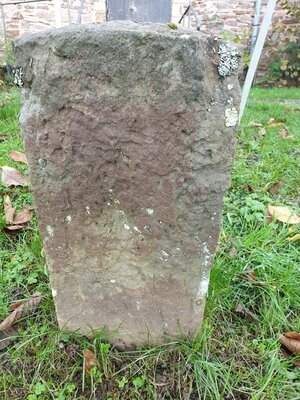 Ein Grenzstein, welcher vor 1776 entstanden sein muss. Genaue Informationen zum Herstellungsort und Fundort liegen nicht vor. Allerdings weist der Stein, der in einem sehr guten Erhaltungszustand ist und dessen Glättung kaum Verwitterungen zeigt, einen Schriftzug auf einer Höhe von 38cm auf. Der Schriftzug G.v.K. lässt sich Graf von Kesselstatt zuordnen und darauf schließen, dass der Stein Adelsgut begrenzt haben muss. Da in der Grenzsteinsammlung ein weiterer Grenzstein, CST 2891, mit eben dieser Aufschrift enthalten ist, von dem man zudem den Fundort kennt, kann zumindest die Vermutung aufgestellt werden, dass der Stein ebenfalls aus dem Bereich Bruch in der Eifel stammt. Der Stein ist lediglich auf der Vorderseite beschriftet. Die Rückseite weist im Vergleich zur Rückseite Verwitterungsspuren auf und ist ebenfalls weniger sorgfältig geglättet worden.