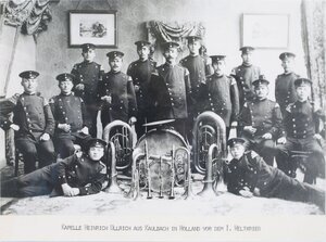 Das Foto wurde vor dem vor der Gärtnerei Fuchs im Jahr 1936 aufgenommen und zeigt zwei als Germanen verkleidete Zugteilnehmer, die an einem Baumast hängende große Rebe mit roten Beeren tragen.